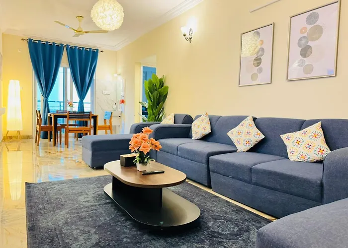 The 2-room Evara Urban Oasis - Luxury 3Bhk Apt Near Aig Hospital Hyderabad includes a terrace and is located 3.2 km from Jayabheri Silicon Tower. Guests can also enhance their experience by participating in ping-pong.